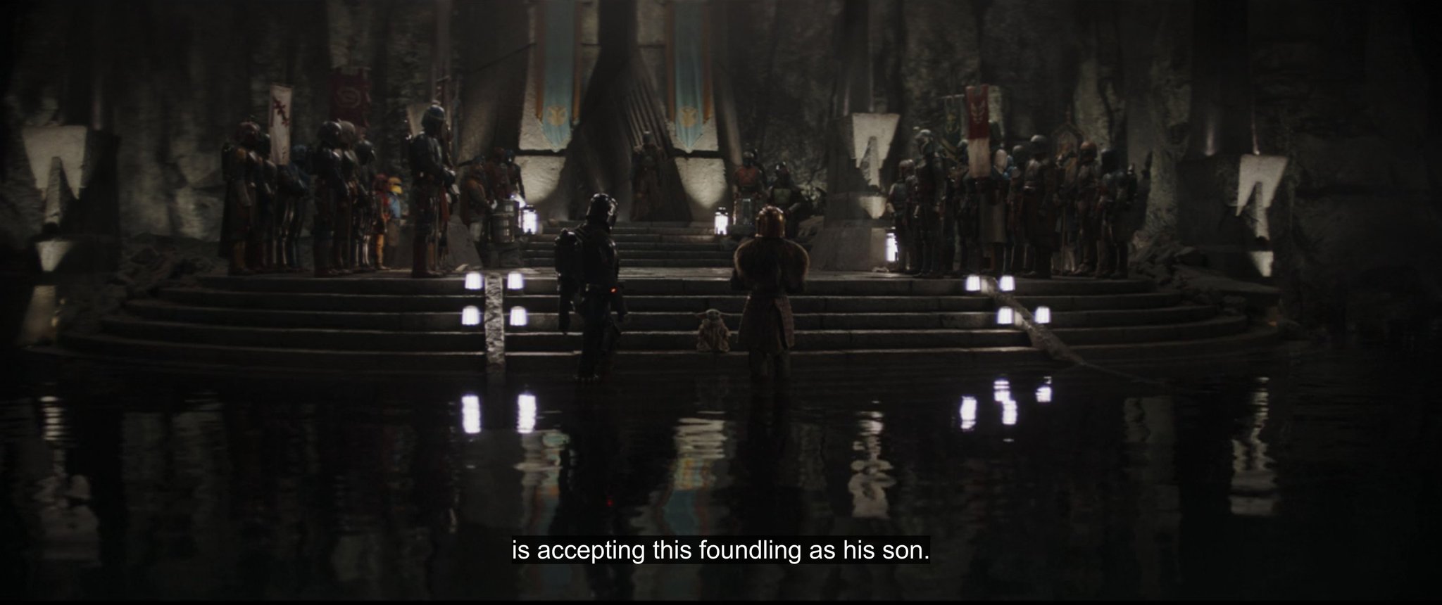 Right from the badass and action packed opening, its understood that this episode isn’t going to be a joke and it is here to leave a mark. As Din and Grogu make their way inside the base with R5’s help, Bo-Katan and her legions carry out the battle for Mandalore outside. The sequence where Armorer and Bo-Katan (holding the Dark Saber) lead the flying Mandalorian army to Gideon’s base is extremely chills inducing and takes us back to the glory days of Star Wars. Also, Din’s action sequences while he fought Beskar wearing Stormtroopers as well as the Praetorian Guards (Red Beskar Armor Troopers) were very well choreographed and finally gave Din moments to shine.